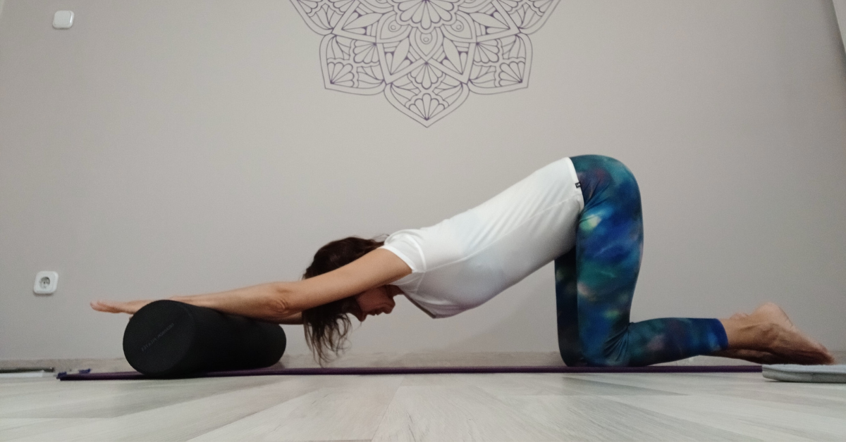 If you’re feeling stiff all over, particularly in your shoulders, arms, and neck, try a puppy position. Yoga blocks could be useful if you have trouble bringing your elbows to rest on the floor or if you need assistance adjusting your posture. To do this, just bring your hands behind your head and put a block under each elbow.